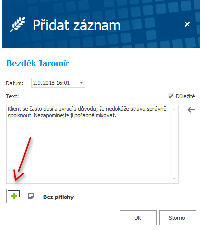 Záznam můžete také doplnit pomocí tlačítka Přidat přidat přílohy.