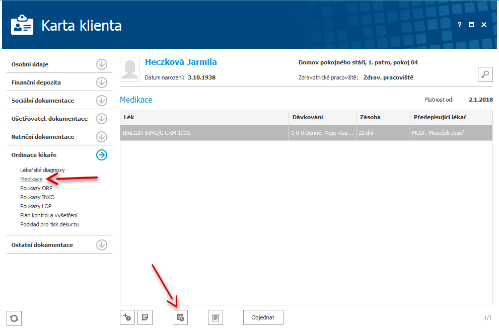 (KDE? Klienti – Karta klienta – Ordinace lékaře – Medikace)