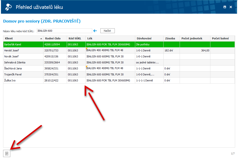 Poklepáním na řádek klienta s takovým lékem se dostanete na jeho kartu.
