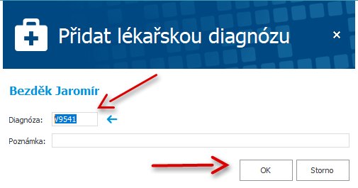 Diagnóza se zapíše do políčka sama a stačí jen uložit klepnutím na OK.