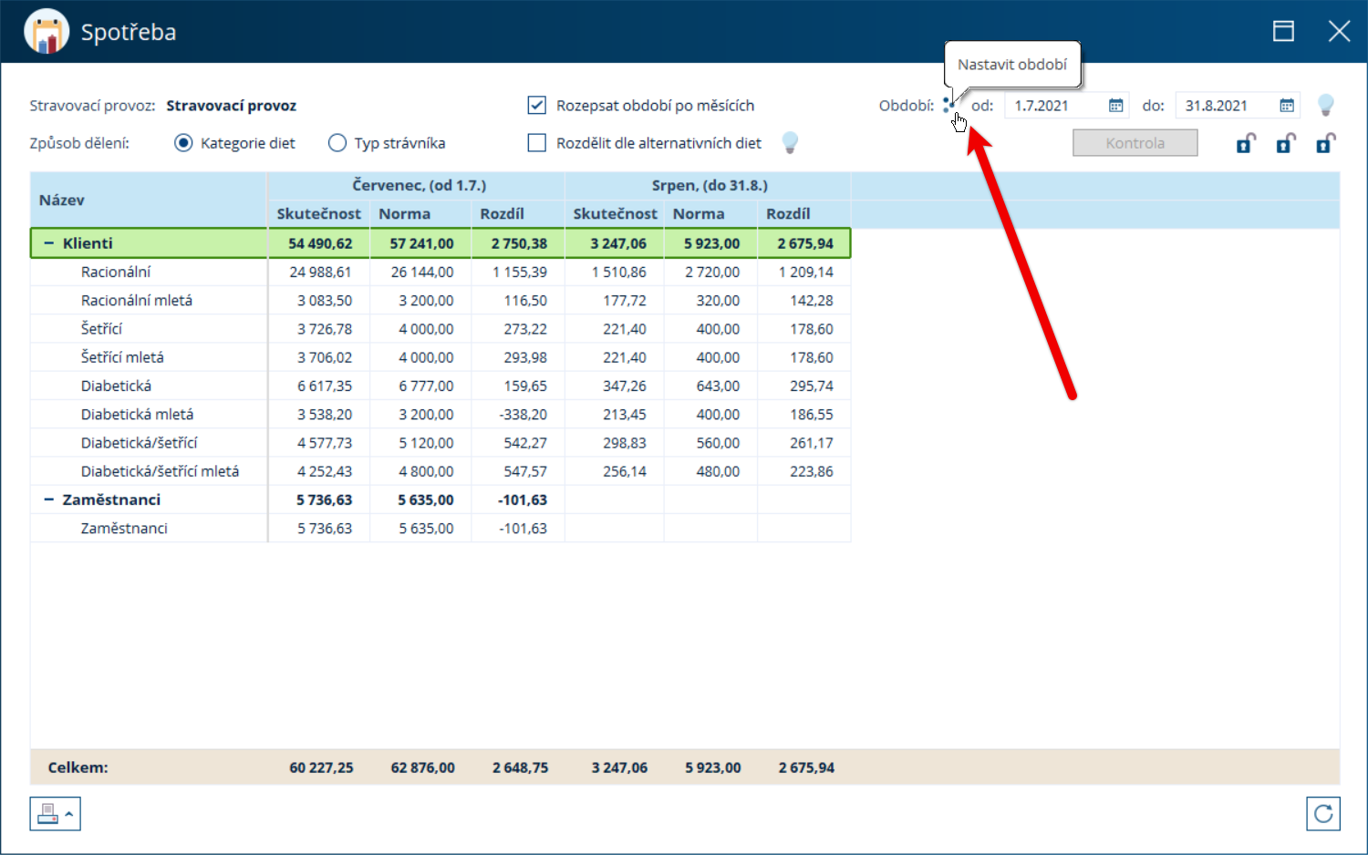- Typ strávníka (Klient s poskytovanou službou, zaměstnanci, cizí)