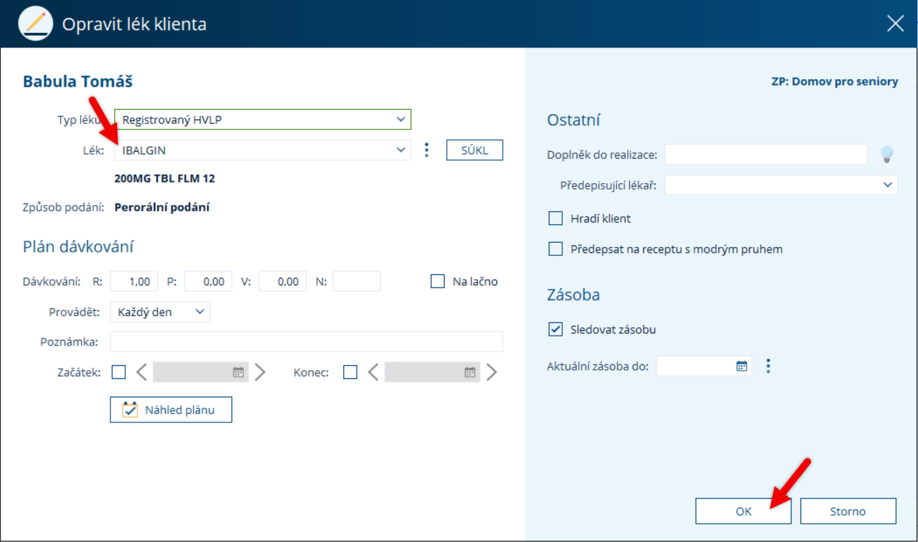 Hotovo? Vše v léku zadáno? Uložte jej klepnutím na tlačítko OK.