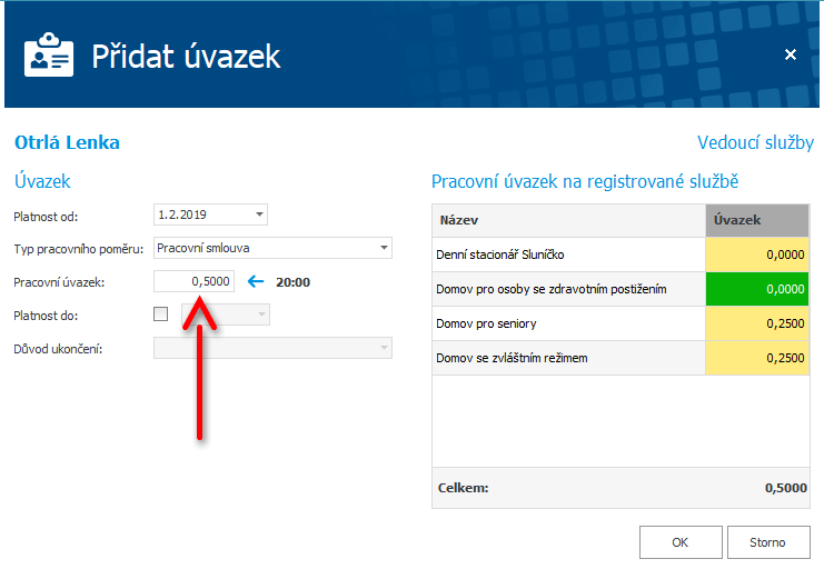 Při změně úvazku, se automaticky ukončí nový a v platnosti už bude ten nový.