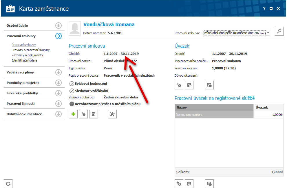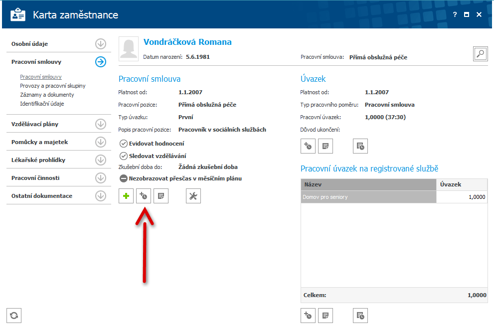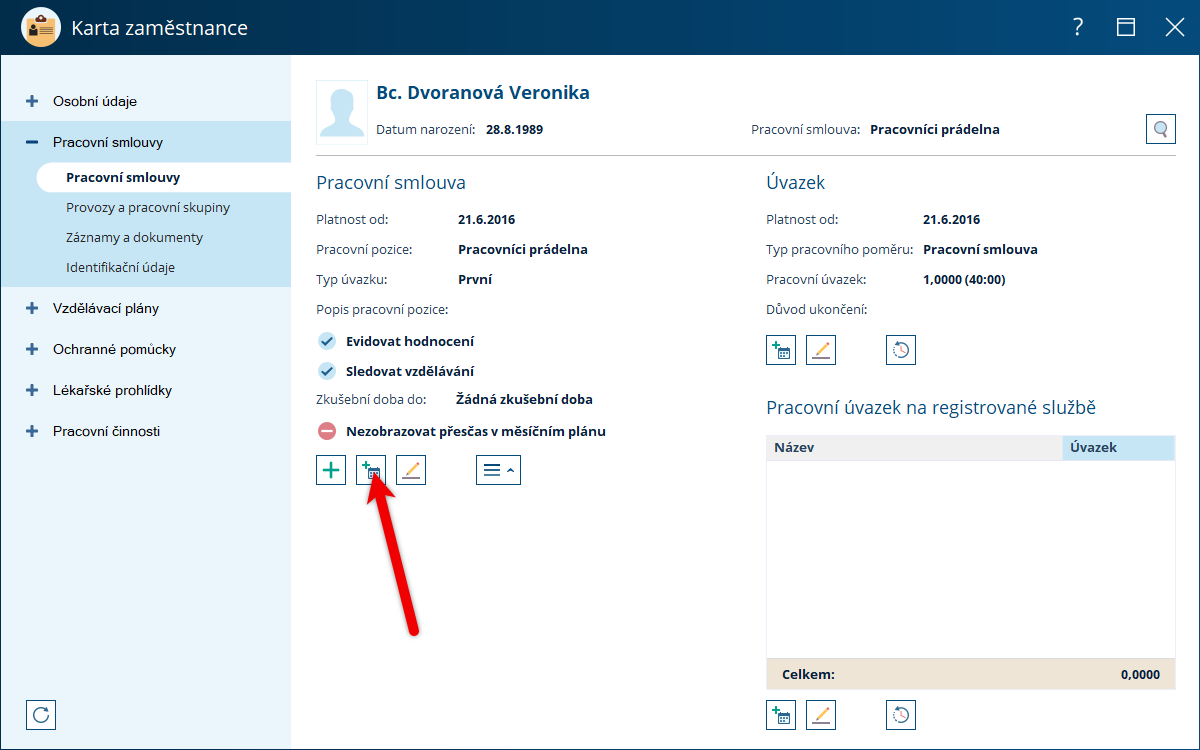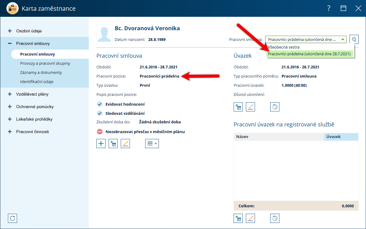 (KDE? Zaměstnanci – Karta zaměstnance – Pracovní smlouvy)