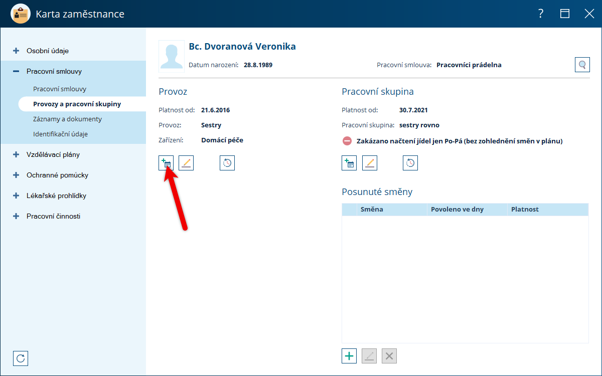 (KDE? Zaměstnanci – Karta zaměstnance – Pracovní smlouvy – Provozy a pracovní skupiny)