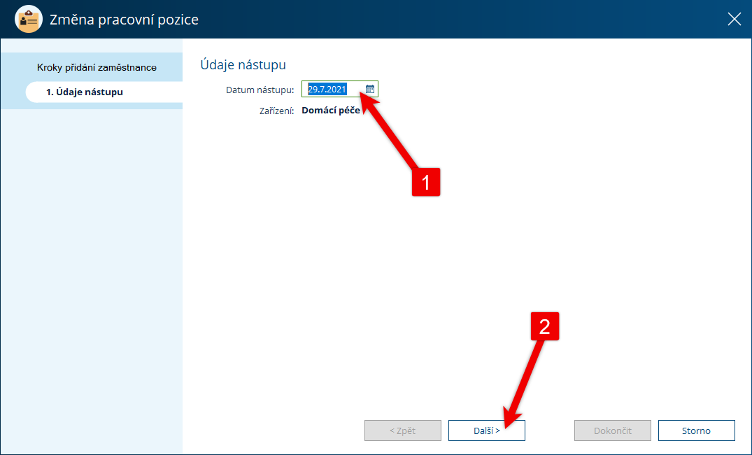 V otevřeném průvodci nejprve zvolte datum, od kterého je změna platná. A pokračujte klepnutím na Další.