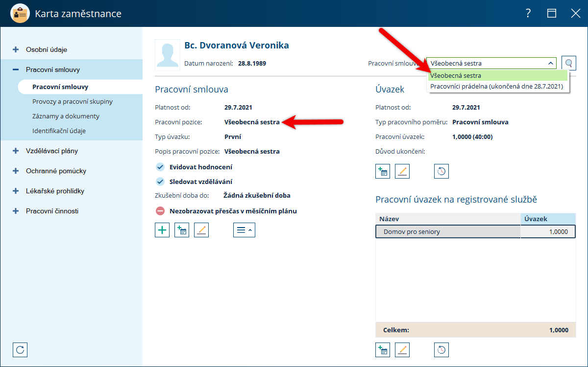 Přejděte do karty zaměstnance, u kterého pracovní pozici měníte.