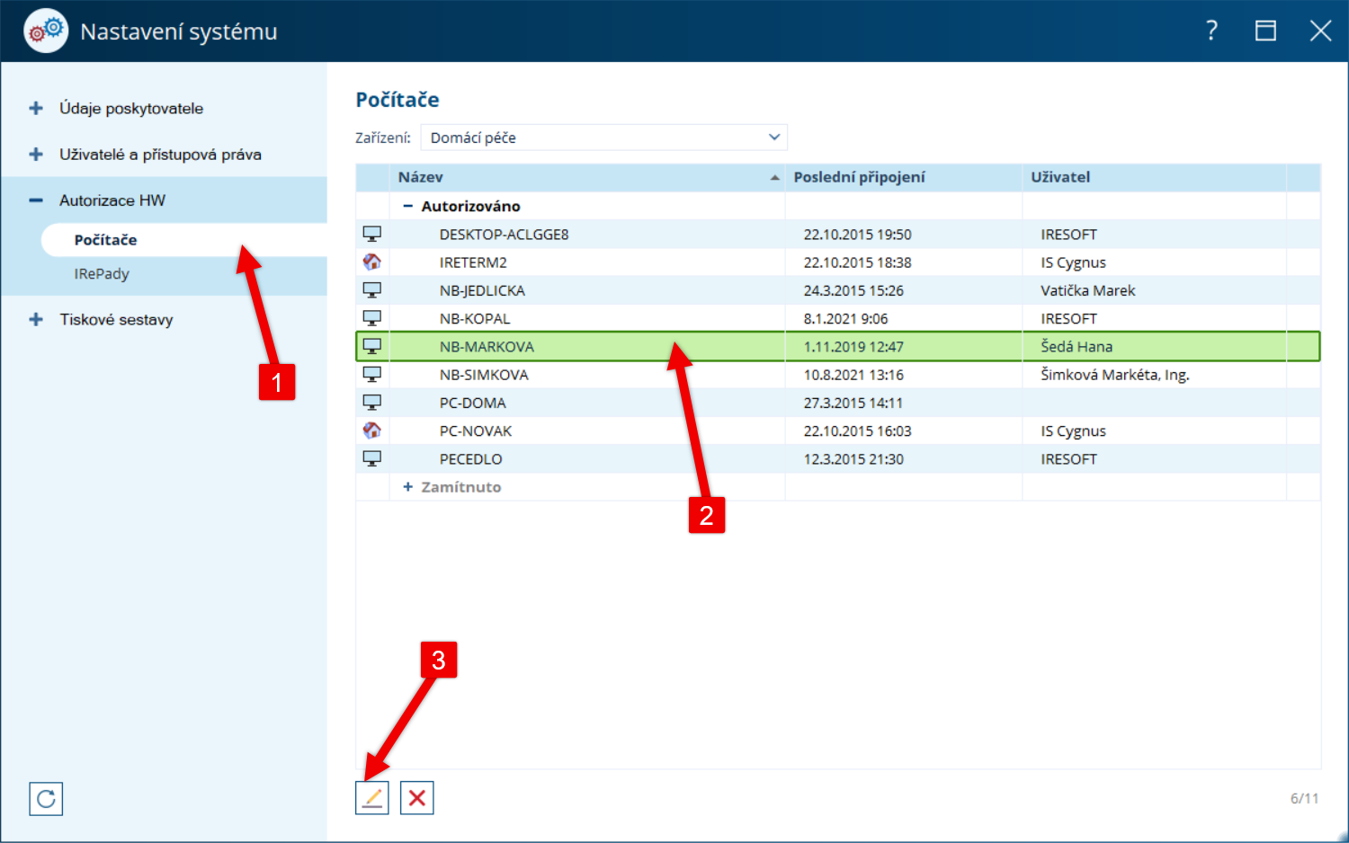 Existující zařízení, kterému chcete zamezit přístup v sekci Autorizace počítačů označte a klepněte na tlačítko Opravit.