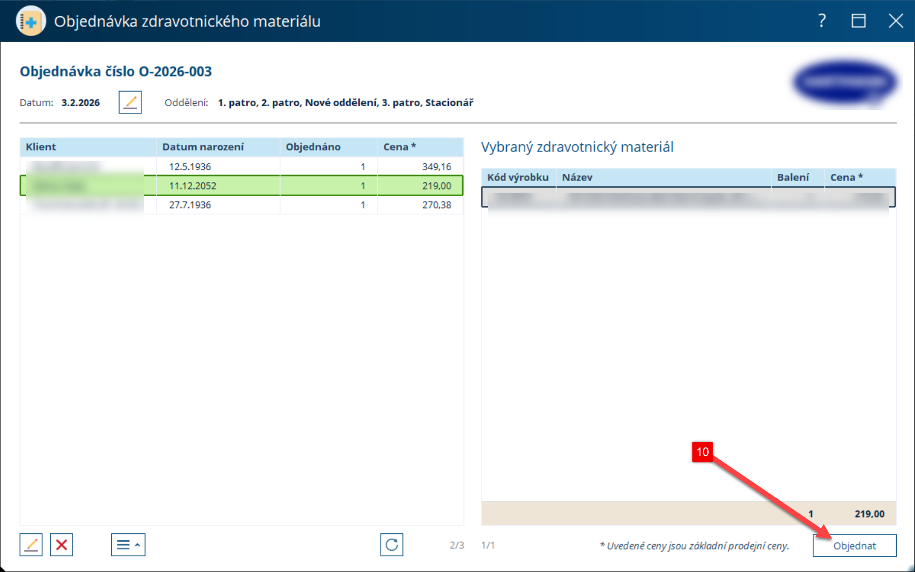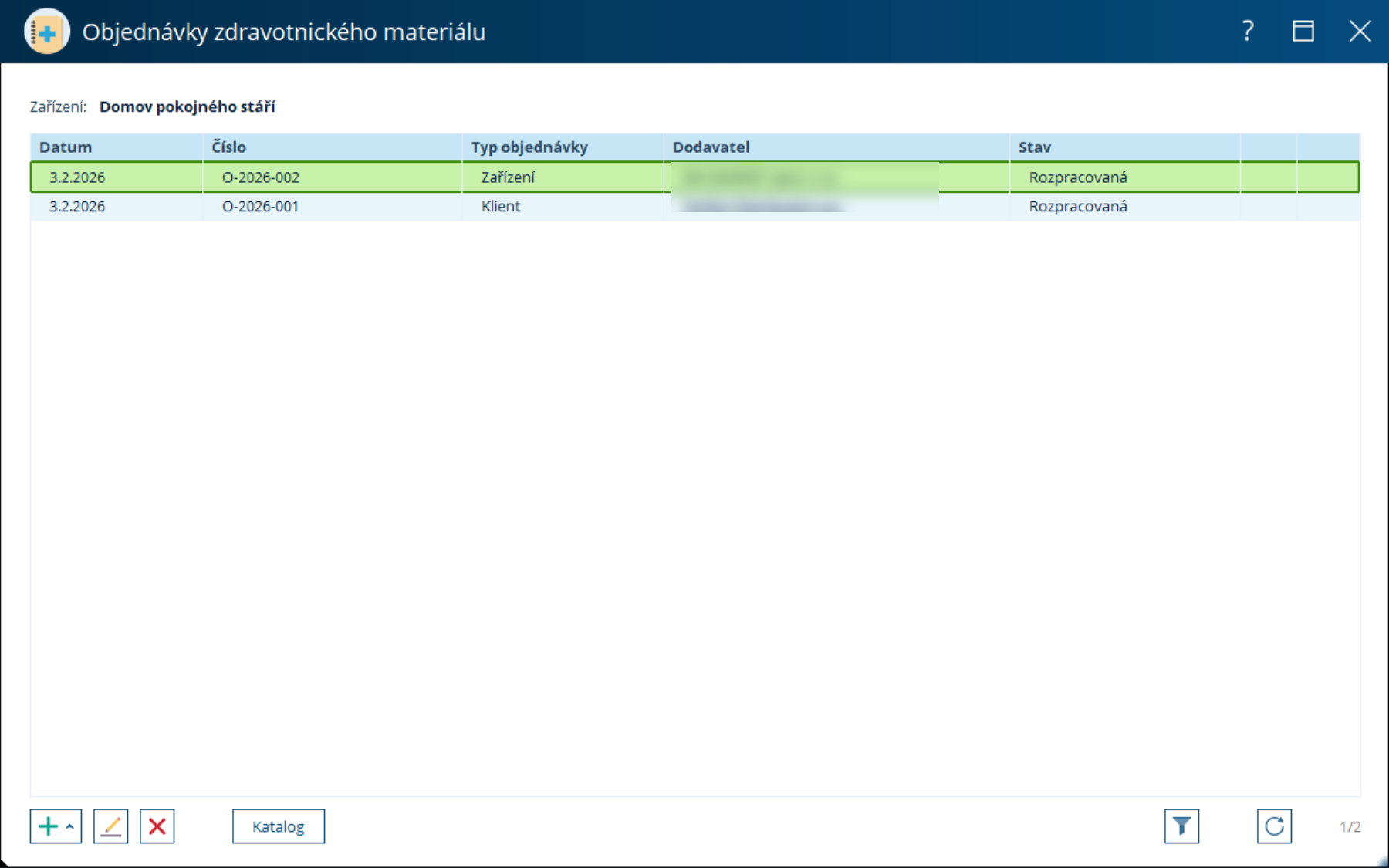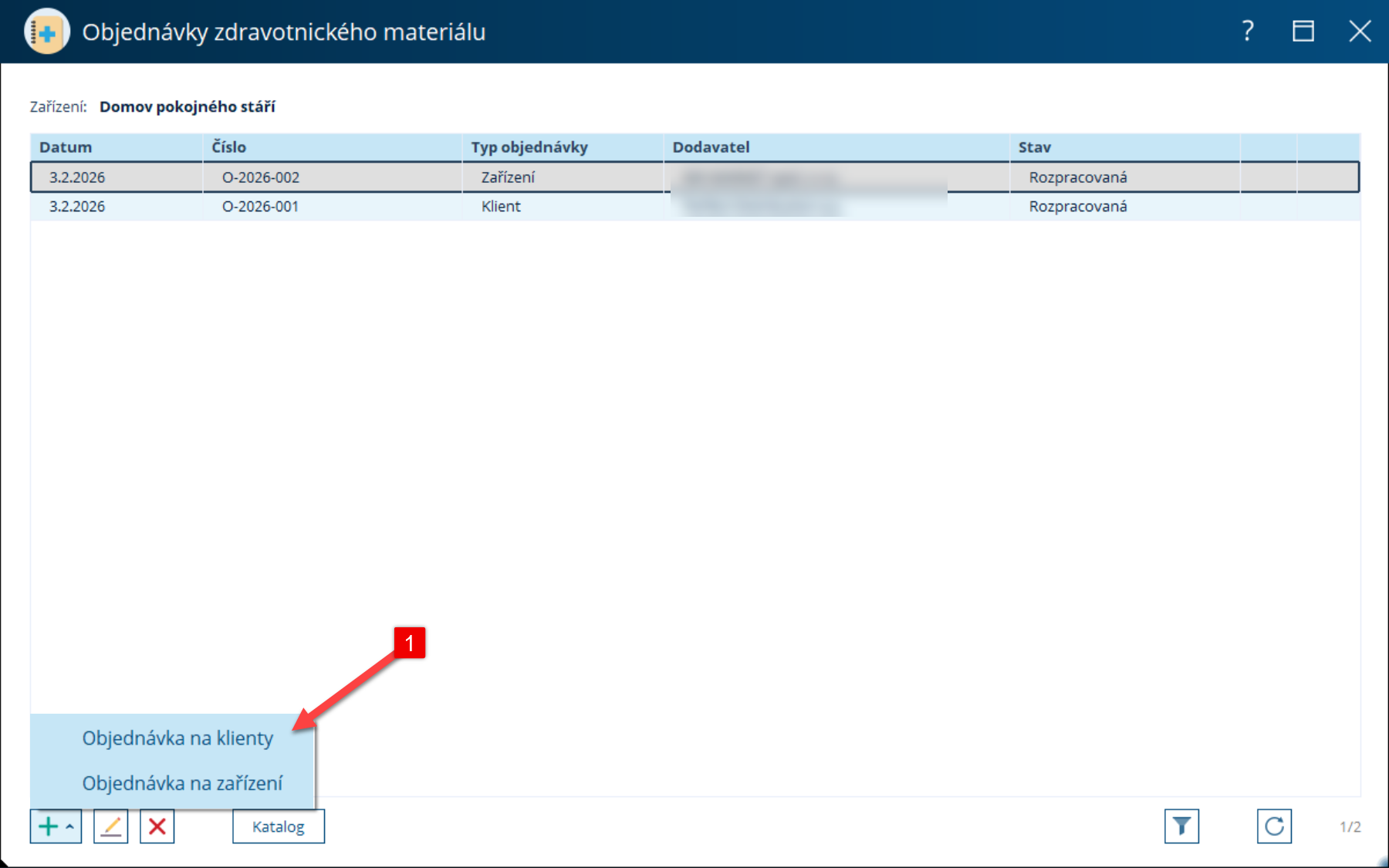 KDE? Klienti > Objednávka zdravotnického materiálu