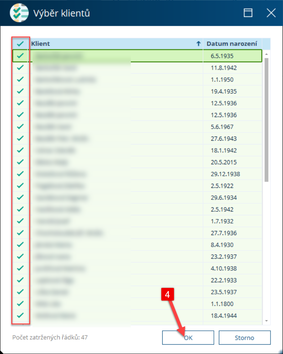 Vyberete klienty, kterým chcete vytvořit objednávku a kliknete na tlačítko OK.