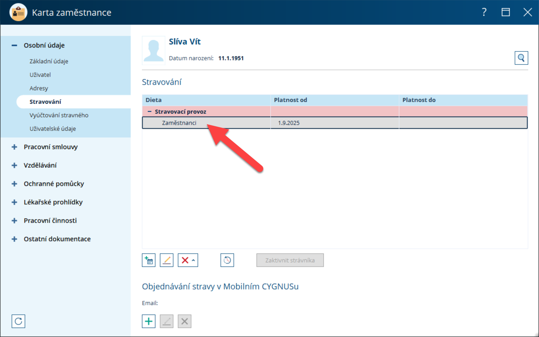 KDE? Zaměstnanci - Karta zaměstnance - Osobní údaje - Stravování