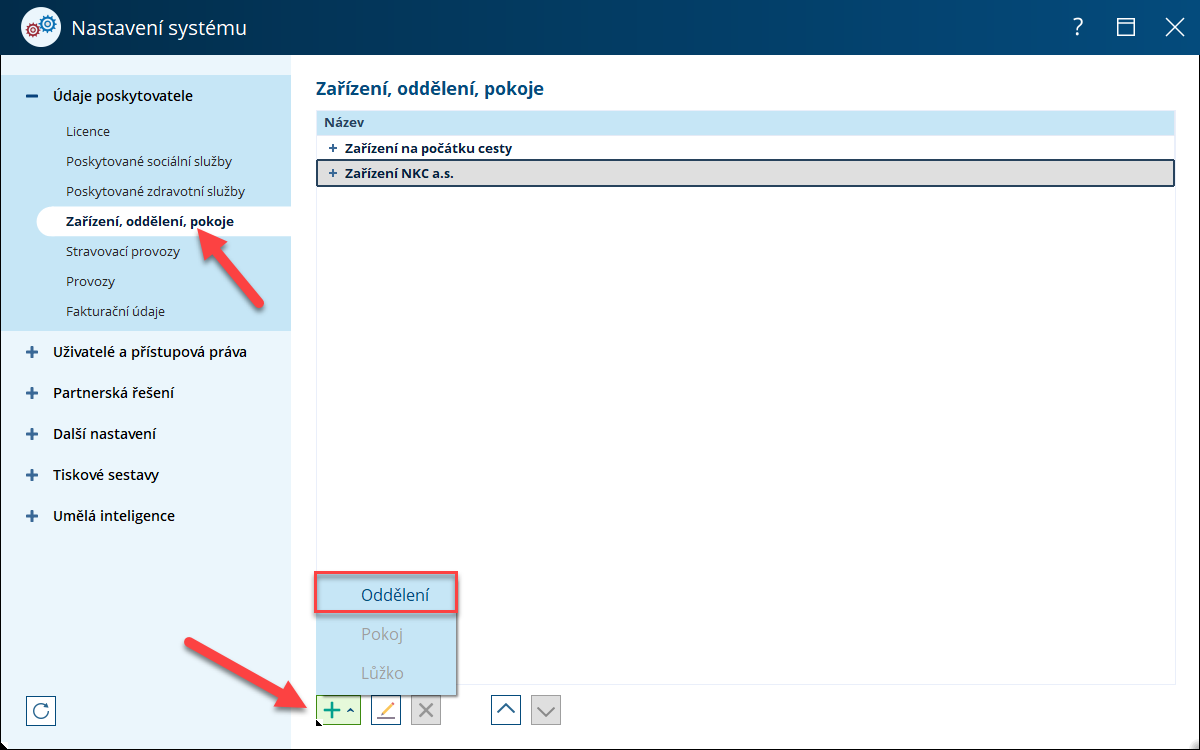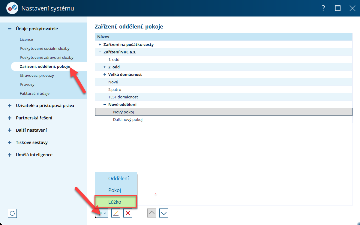 Jak nastavovat oddělení a pokoje, nově i lůžka