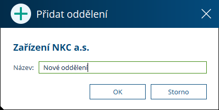 V otevřeném okně zadejte název oddělení a uložte klepnutím na OK.